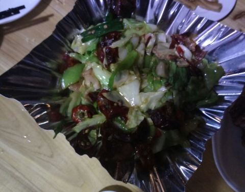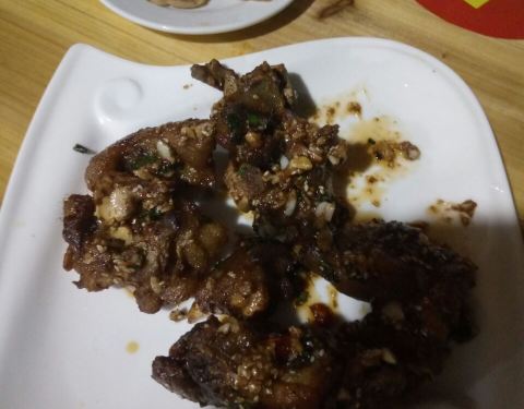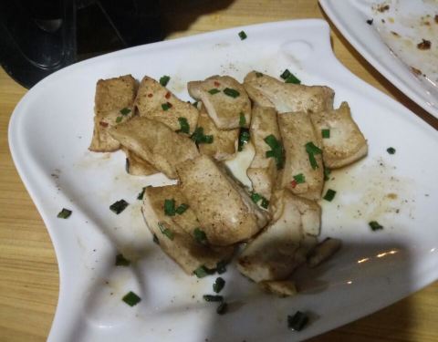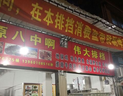 景色很美,但是下面有好多小贩用喇叭在叫卖,很吵,我们泡完了温泉,从温泉正大门出来,有一家伟大排...