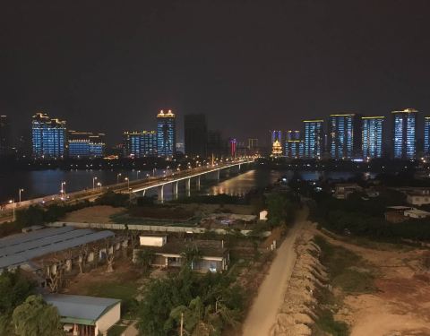 我们住的房间是临江的,晚上看到被战大桥,景色很美,但是下面有好多小贩用喇叭在叫卖,很吵,我们泡完了温泉,从温泉正大门出来,有一家伟大排档,口味不错,老板人也不错四个人消费了123元,吃得很心情大好