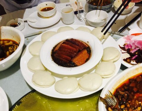 烤鸭的皮超级酥脆,配梅子酱非常美味。觉得锅盔辣子里地锅盔有点硬,并且里面比较虚,不是很推荐