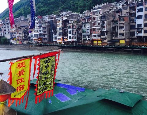 小店位于古城的新大桥附近,从祝圣桥走过去,大概19min左右。白天的话坐在店里,晚上的话可以坐在河边,边看夜景边吃饭。 小店的老板娘特别敞亮好客!至于就餐环境大家就不要有太多的要求了,整个古城基本都差不多,但菜品的味道是真的不错! 我们点了豆花烤鱼,蕨粑炒腊肉和红糖糍粑。3斤多的江团鱼,硬是被我们两个人全部消灭了。秦博士对蕨粑炒腊肉,赞不绝口。而我更喜欢烤鱼里的豆花,沾着浓郁的汤汁,美味! 我们去时天气很炎热,去吃个饭就出了一身的汗,撑不住的我们果断选择躲回客栈刷《向往的生活》去了。傍晚突然下起大雨,雨停之后温度降了下来,这个时候我们出来看看夜景,吃个晚饭,凉爽舒心。
