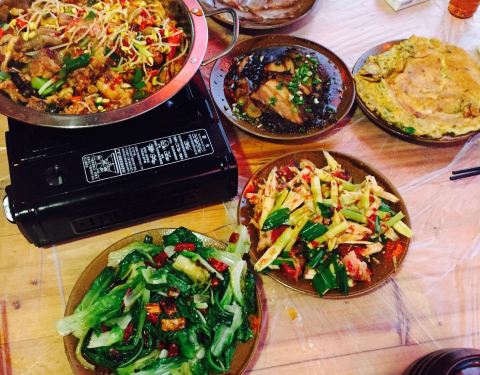 古城里人气比较旺的一家店,自己找位子坐…餐具点菜倒茶买单都要叫好几遍…辣子鸡,和我们平时吃的不太一样,我们油炸的,它是红汤型的。鸡处理的太小了,基本没吃到啥肉,都是骨头…看着满满一大份,其实配菜啥...古城里人气比较旺的一家店,自己找位子坐…餐具点菜倒茶买单都要叫好几遍…辣子鸡,和我们平时吃的不太一样,我们油炸的,它是红汤型的。鸡处理的太小了,基本没吃到啥肉,都是骨头…看着满满一大份,其实配菜啥占了一大半,吃完鸡还是满满一大份…香椿炒鸡蛋,味道一般般。豆腐笋,笋干,豆腐,豆角吧炒一起,用生菜叶子包着吃,味道还不错。