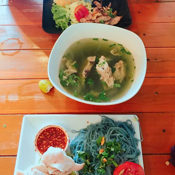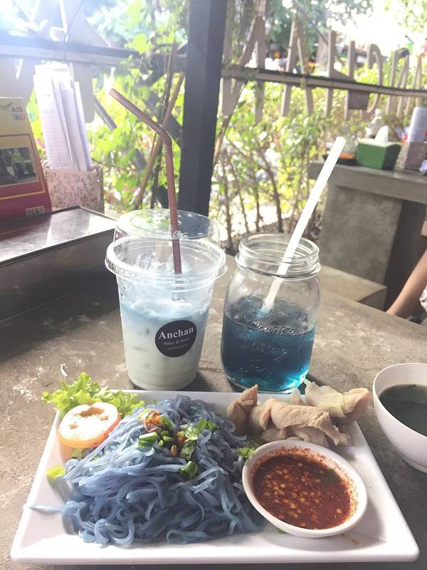 蓝色面条比较火,好像在吃黑暗料理一样。蓝色的面,好有趣,味道也不错,关键摆盘好看,几个服务员都是lady boy不说话完全要看不出来…价格超便宜。到了下午,跟大叔相处的最后一天了,吃...网红餐厅Anchan Noodle