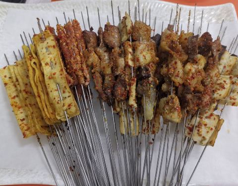 非常小,但是特别火的一家小店。蘑菇根好吃,刚开始还以为是板筋,尝了一口才发现是蘑菇根。 串很不错