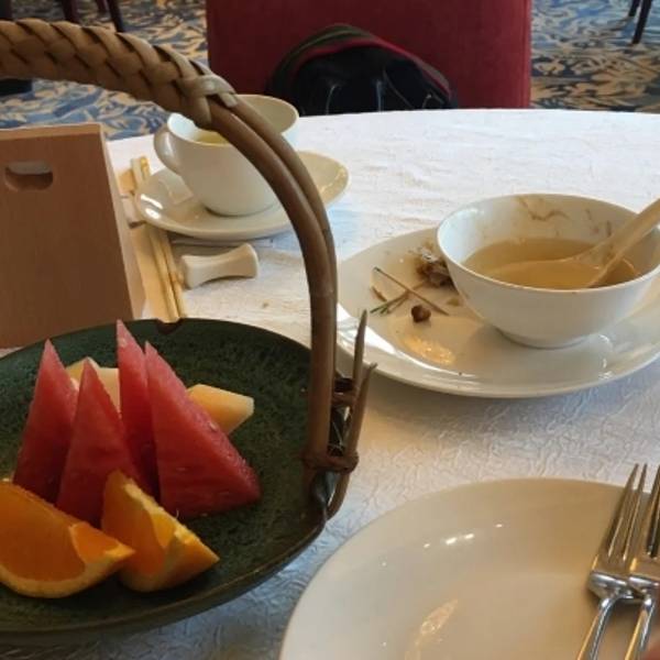 琶洲c出口,现在围蔽起来,现转一个大圈才到,建议开车来。夏宫茶位十八元一位,不够暖心的系茶壶无小蜡烛燃热,茶水在冬天好快就凉了。点心精美,品种新颖,墨鱼汁包,羊肚菌酿牛肉,好味,牛腩肠粉一般,牛腩好韧。脆皮烧腩仔配上黄芥末,味蕾提升。