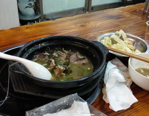 羊肉汤味道正宗羊肉很多,关键羊肉品质好,一份汤配一个饼或者饼丝。馅饼外脆内软面团发的不错,有嚼劲。配上一口羊肉汤绝了。 羊肉砂锅比起来稍微逊色一些,但是即使是小份的东西也是十足~汤底味道没有清汤正,但是老板细心,砂锅汤没了就主动给我送了一碗清汤。还会再来噢