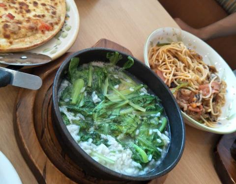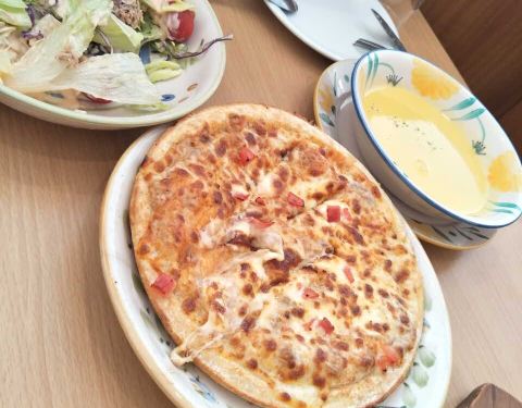 常去的一家店,主要是价格实惠,味道的话时好时坏,尤其是披萨,每次烤的程度都不一样。宝宝最爱喝玉米浓汤,味道甜中带一点点咸,很好喝。尤利鱼的这个菜泡饭不好吃,鱿鱼烤过了,有点苦