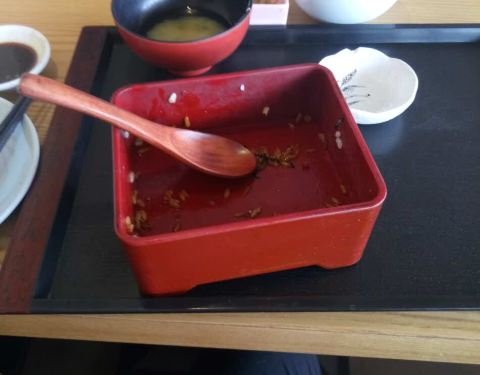 终于明白为啥订座要下午1点以后的时间,因为中午排队…不过好在大家动作都很快,换桌率很高! 纠结了半天,还是点了鳗鱼饭,四块鳗鱼,都是比较中段的位子,稍微有刺,口味还不错!酱汁给的比较多,所以饭也很好...终于明白为啥订座要下午1点以后的时间,因为中午排队…不过好在大家动作都很快,换桌率很高! 纠结了半天,还是点了鳗鱼饭,四块鳗鱼,都是比较中段的位子,稍微有刺,口味还不错!酱汁给的比较多,所以饭也很好吃! 中午基本都是套餐,送味增汤,稍微淡了点。还有色拉,色拉给的是醋,也蛮好吃!还有小黄豆和豆腐皮,不错! 豪华海鲜饭,料很足啊!有鲍鱼,牡丹虾,各种鱼的刺身,还有鱼子。价格也很美丽,188。 天妇罗,不太油,但是还是不怎么很喜欢! 有免费湿巾纸和餐巾纸,这个不错!
