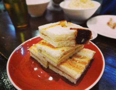 虽然是一家以海南鸡饭为主打的餐厅,但是我觉得爆炒鸡杂真的好吃。好的,说下海南鸡,反正新加坡的海南鸡不是泡在酱汁里的,而是蘸酱吃的呀。鸡油饭倒是那个意思。因为想吃甜品,没点咖椰吐司,好奇他家的咖椰吐司好不好吃。