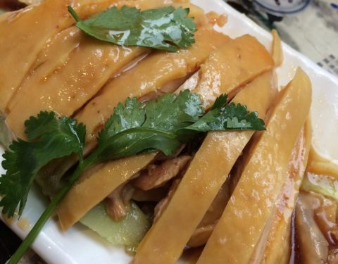 好久不吃鸡 分外想念 想到了这家五星海南鸡饭店 周末踏入店的第一个念头“怎么没食客,难道落寞了” 随即被打消了 不是落寞 而是时间未到 一大块黑板标着价目表 另一面是手绘 根据分店不同 提供的品种略有不...好久不吃鸡 分外想念 想到了这家五星海南鸡饭店 周末踏入店的第一个念头“怎么没食客,难道落寞了” 随即被打消了 不是落寞 而是时间未到 一大块黑板标着价目表 另一面是手绘 根据分店不同 提供的品种略有不同 新乐路这家没有套餐 有点意外 那就单点吧 『半只鸡』¥78 油光蹭亮的鸡皮 选用后腿部分的活肉 吃口那叫一个香嫩 三款酱料随你挑选 个人偏好酱油膏 底部铺满了去皮黄瓜片 浸在调料里也很好吃哦 『油鸡饭』¥9 泛黄的鸡油饭 米粒稍有粗糙感 有附着姜丝 吃口还不错 『叁岜空心菜』¥28 蒜蓉&虾米爆香 加入叁岜辣椒酱 空心菜的吃口很清脆 配着酱汁有点微微的辣 『鸡汤』¥1 推荐的鸡汤 美其名曰只要一元一碗 清汤寡水 淡而无味的 绝对是败笔 好端端的五星海南鸡 别拿鸡汤坏了名声
