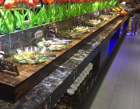 - 一家人吃的特别饱。值得推荐的自助餐。口味新鲜度都很好,甜点饮料样式也很多
