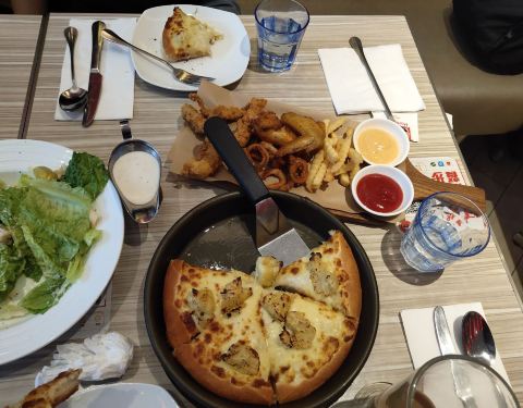 前菜口味一般,沙拉不如很多西餐厅的好吃,披萨做的太厚,榴莲味道不够浓。咖啡和其他饮品味道都还不错,推荐大家点热饮,甜点就没必要点了。