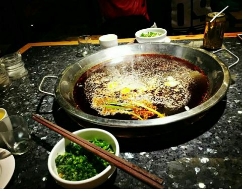 当地朋友带去的,据说经常没位子,点了牛油微辣锅,很香,吃个不停,泡菜也很受欢迎,加一份还得加钱,调料里还有蚝油可选,当地朋友介绍调料碗里除了香油和辣酱还得加醋才是正宗四川吃法,麻香酸,尝试了一下确实不一样,好吃!