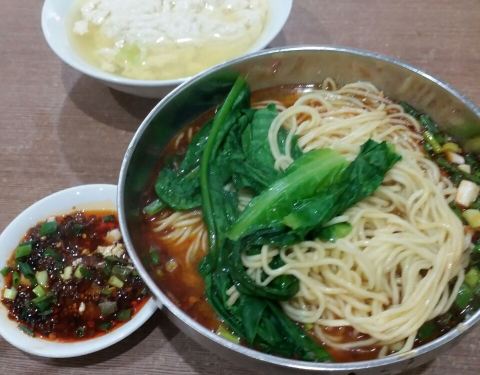 面店不错,干净凉快,吃了红油牛肉面(汤面)和摊摊面(干拌面),个人感觉摊摊面好吃一点,给孩子要了不辣的水饺,很好吃,汤水也很鲜美。