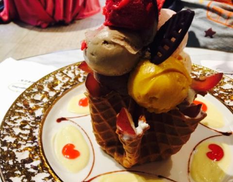 今天是放假最后一天,来食宝街吃饭饭。我和儿子点了冰淇淋,内部有5,6个球,每个球的味道都很赞,很纯
