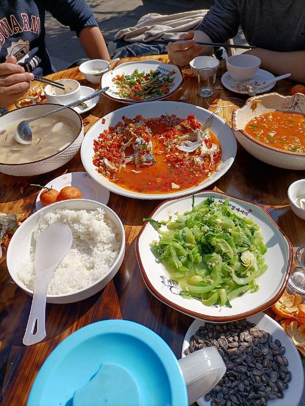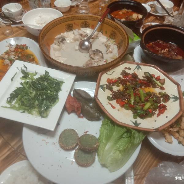 到泰宁游玩的第二天晚上,想换个饭店调下口味,网上查到这家排名较前,好评较多的店。点了一整条花鲢,想搞个一鱼三吃,但是店家说只能二吃,于是鱼头烧汤,鱼尾红烧。鱼头汤和前一晚吃的味道差不多,也是汤浓味美,比较惊喜的是鱼尾,那个肉质超级嫩滑,特别好吃,看上去红红的挺辣的样子,实际却不算太辣。盐水虾的肉质很紧实有弹性,比前晚的质量好,其他农家菜的味道还算不错,总体比较满意。