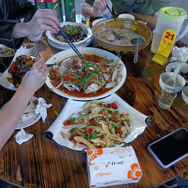 泰宁最后一餐,一定少不了大金湖有机鱼,真的是名不虚传,味道超赞!鱼头浓白汤,一上桌就惊呆,好大一盆,味道是真的好,一下喝了三四碗,真的是比我们家里的鱼好吃多少都不知道,鱼肉选择香辣,味道偏咸,但是...