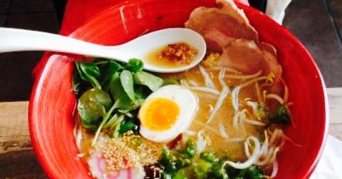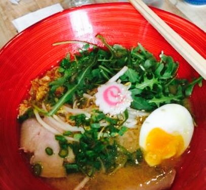 - 这次吃了最经典的牛肉叉烧,猪肉叉烧和米饭,当然还有这里的招牌拉面,拉面的汤很浓,上面还配上蔬菜...
