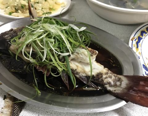 和拼车小伙伴一起共进晚餐 果盘人多力量大,点了满满一桌子菜 不用两个人纠结晚饭吃啥了 食材都很新鲜,厨艺就一般了 吃的就是原汁原味吧 比较推荐的就是他家的蒸鱼了,很鲜