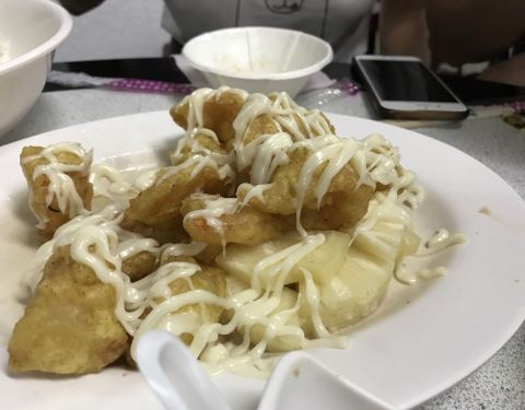 来台湾好几天了,因为是一个人,所以没真正吃过台湾口味的餐馆。来到垦丁,看到巷子内海鲜热炒合菜的介绍,就来尝一下。点了三个菜,味道都不错。其中一个菜的名字很有意思,叫情人的眼泪。