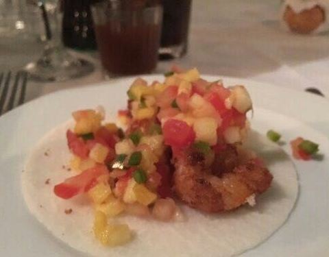 Tacos tropicales, camarones thai, agnoloti marinero y postre de cajeta comida deliciosa y excelente servicio