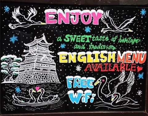 - スイート縄手本店はWiーFi フリー♪ スタッフが手描きしたこの看板。細かいところまで描き込ん...