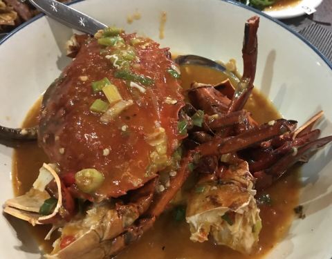 螃蟹人名币100多一点,便宜又美味,海鲜的个头特别大,我点的最小的都吃撑了,龙虾一般有点贵,花了300多人名币,可能是因为我本人不爱吃,味道是我在美娜多吃的最好吃的啦,一顿饭花了100万印尼盾,哈哈哈~可以...