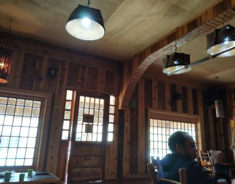 ...比索,内部的装修很简单,优点就是外面有座位里面有三张大台可以容纳4个人一桌,或者5个人一桌吃饭