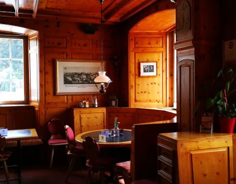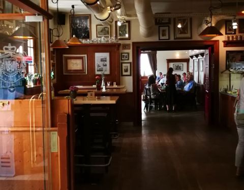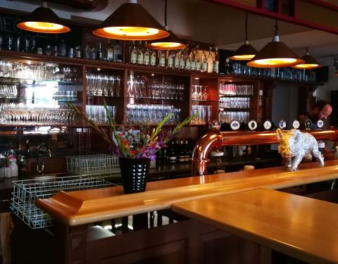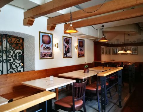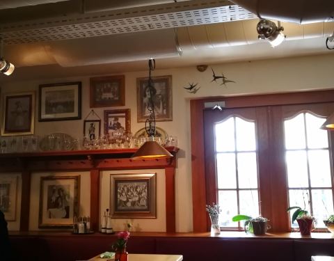 餐厅旁有专用的车位,但是开车进镇时不容易看到,等开到餐厅门口则停车位已经过了,算了就在啤酒厂门口附近找个位置停车,反正坐在室外喝啤酒看得见。餐厅非常大,室内浓重的乡村氛围,墙上挂着许多老照片,还不...