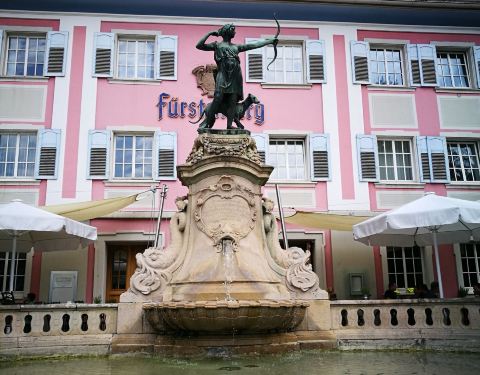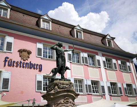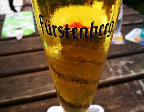 两年前的八月,在黑森林南部蒂蒂湖住了一晚,第二天一早就出门去Donaueschingen。之前几年曾两次与小镇擦肩而过,这次总算满足心愿。下高速没多久就进镇了,经过Donaueschingen宫殿,就来到了Brigach小河边,Furstenberg啤酒厂就在不远处。这里自1283年起酿造啤酒,是德国十大生啤供应商之一,每天集装箱卡车不停地拉出一车又一车啤酒。厂房的正面就开了Furstenberg Braustuble餐厅。这是一片河岸前的开阔地,正对着小桥,阳光充足,视野宽广,有大型古典喷泉。可以坐在室内,不过这种天气当然要坐室外,喝上一杯清澈的啤酒,啃啃猪手,晒晒太阳咯。说实话,这里的生啤真是不错