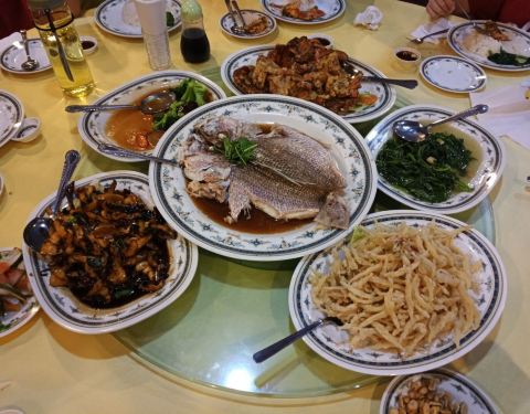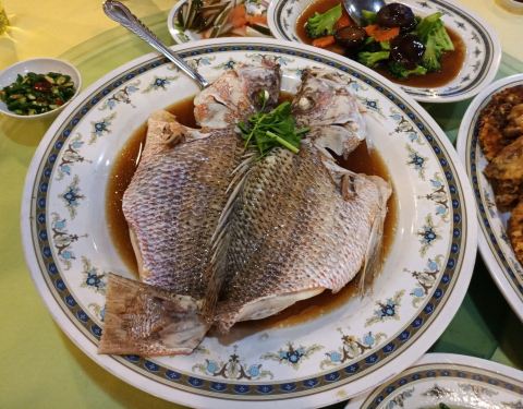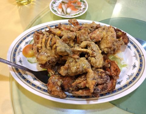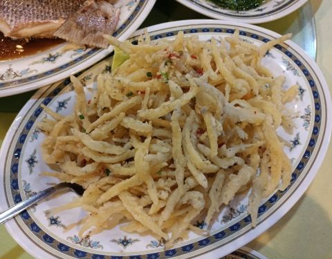 海鲜都是冰鲜的,要了一条大hong鱼,很新鲜;螃蟹是活的,蟹壳里全是蟹黄,太棒了;还有炸银鱼很酥香,炒螺肉很筋道。同行的两个小朋友不吃海鲜,点了炸鸡薯条,味道也很赞。有位祖籍海南的大爷非常热情,全程都是他们接待的我们,给我们推荐好吃的做法,赞一个!一大桌子,5大4小花了307马币,很实惠。