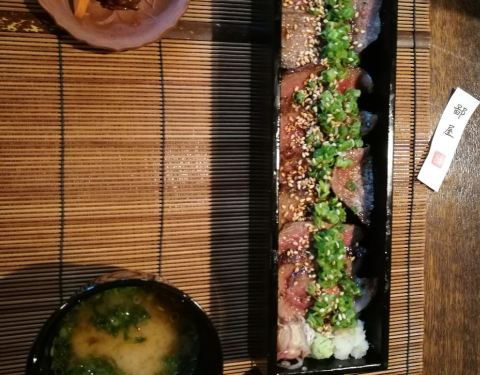 这家店从外面看感觉超好,有一种曲径通幽处,禅房花木深的感觉,顺着小路进入餐厅,环境也超赞。牛肉饭真心好吃,中午只有定时牛肉饭,有两种价格的牛肉选择,相差日元500左右,毅然选择了贵的,两份牛肉饭一共花了人民币300左右。每一份定时都包括味增汤,小菜,沙拉。味道真心好,感觉牛肉入嘴即化。下次还会来吃。