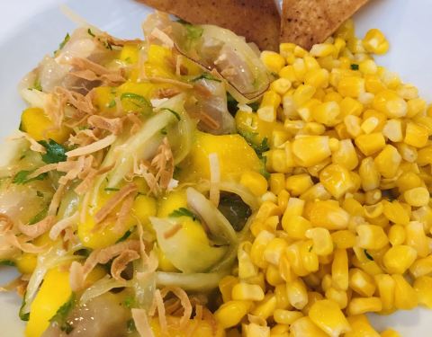 这家是秘鲁菜,位置比较偏,离中心区有段距离,而且店面不算大,我们去的时候没有合适餐桌了,只能是茶几或吧台,最后我们选了吧台。按推荐点了芒果鲈鱼,端上来没想到竟然是生鲈鱼,不过味道还好,能接受;海鲜...