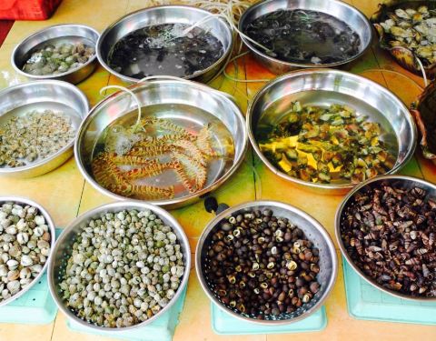 我们点了海鲜火锅,食材很新鲜,品种也很多,有螃蟹、大虾、鱼、乌贼以及蔬菜、冬粉、鸡蛋和水果,很好吃