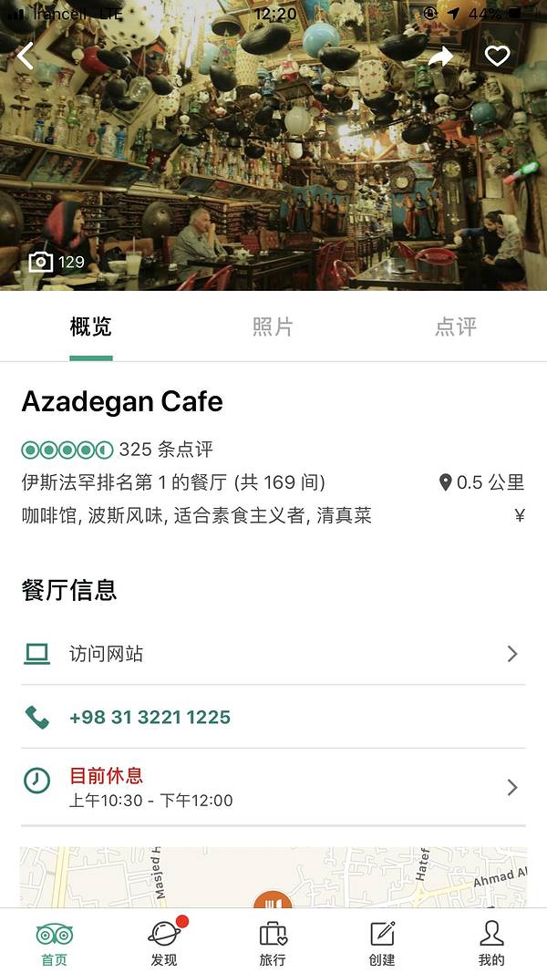 网红店,餐厅从墙壁到天花板都装饰着各种灯具等装饰品,就是位置不是特别好找,不过就在巴扎周围,千万别跟着导航走。 【价格】人均20万 IRR人山人海,还是需要等位置先找个“3人桌”坐下,小伙伴们点菜时也是吸...