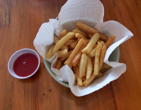 吃了汉堡,额外加了各种馅料,非常好吃。炸薯角也很可口。工作人员非常友好,我们还点了水果和冰激凌作为甜品。总而言之是很棒的一顿饭。推荐。