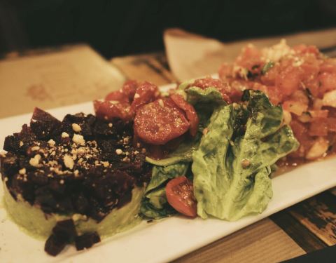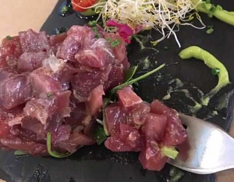 - Salmon Tataki, zucchini flowers and tuna tartar...