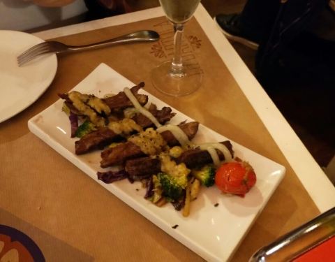 这家在中国游客的眼中已经是非常网红的一家店了!不 过说实话这家附近的店口味、价格和人气都和它差不 多。只是因为这里店小上菜慢,所以感觉一直都爆满一 样。主要是旁边的店都太大了,但是全都坐满了各国 人。这一家就太小了,能容纳30个人左右吧,上菜还特 别慢。 不过这家店的菜品和价格也都还不错,至少是不会踩雷 的。 点了图1的牛肉和图2的猪肉,感觉猪肉更好吃,图3的类 似于汉堡但没有面包的东西也不错,推荐;图4的泰式饭 还行。啤酒和调酒如图5,前面这个有柠檬的好像是巴塞 罗那很出名的一款调酒,经过每一家餐厅都看见有人在 喝,味道还不错,适合女孩子。