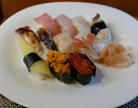 年末年始在稚内开的餐厅很少,让前台查了营业的餐厅推荐了这家寿司店,距离车站步行十分钟左右。 大将和女将是对老夫妻,比较朴素的家庭式氛围,到来的都是熟客感觉。菜单上寿司套餐有不同价位,选了3000的,全部捏好直接上桌,很快就吃完啦。应该说食材是新鲜的,但最近没有海胆,上了熟海胆。