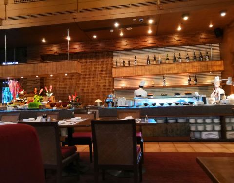 五星级的酒店品质确实不同,餐厅环境舒服,服务周到,菜品的质量很高,日料,西餐,东南亚菜都有,每一样看起来都很有食欲,寿司的选择好多