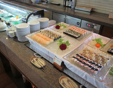 ...服,服务周到,菜品的质量很高,日料,西餐,东南亚菜都有,每一样看起来都很有食欲,寿司的选择好多