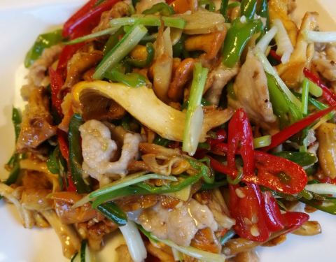 有室外和室内座位,点了天宁椒炒牛肉,味道还行,虾仁和青菜实在一般