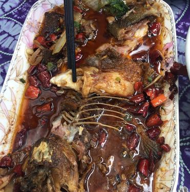 为什么我都拍我剩下的菜呢?因为我太饿了,来不及先给手机吃了,还有呢就是,老板的菜量很足,饭也很多,我都吃了五小碗了,真的不是诚心浪费的。味道很不错,很有农家乐的味道,环境也挺好,院子里还有葫芦,好...
