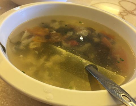 - ...0菜一汤,三个荤的、居然还有酸菜鱼,味道很地道,觉得比在国内的团歺还好,我们那桌菜基本都吃完了