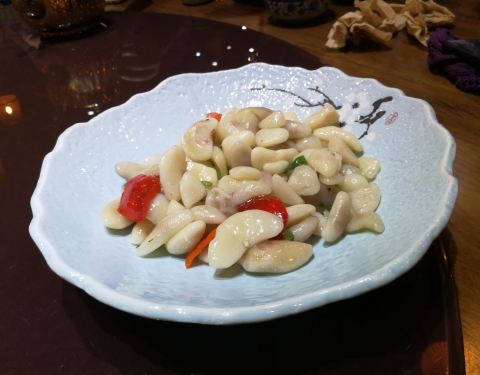 二次到奉贤游玩,巧的很怎么找来找去,又到了这家,规模蛮大的,八仙桌,有特色,菜势还可以,四位点了一个豆腐衣冷拌,好吃;清蒸香鱼,也不错;韭菜河蚌螺丝,有点老;小蹄膀,不错;农家腊肉膳贝,不好吃,膳贝太醒,总体可以
