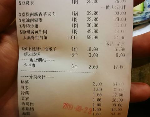 巧的很怎么找来找去,又到了这家,规模蛮大的,八仙桌,有特色,菜势还可以,四位点了一个豆腐衣冷拌,好吃