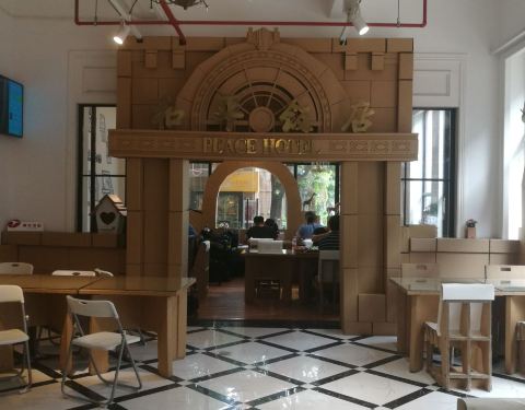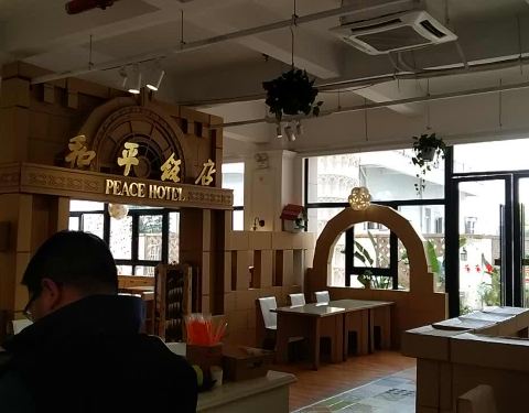 - 餐椅凳全部用纸做成的,包括火锅也是纸的,很新奇,适合亲子活动,儿童有小火车远,还有购物展示厅,...