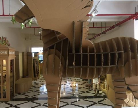 餐椅凳全部用纸做成的,包括火锅也是纸的,很新奇,适合亲子活动,儿童有小火车远,还有购物展示厅,...