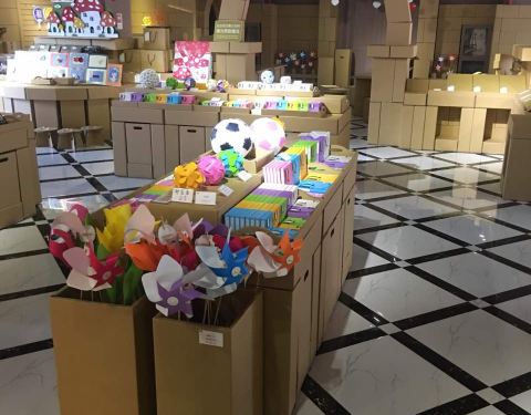 餐桌,餐椅凳全部用纸做成的,包括火锅也是纸的,很新奇,适合亲子活动,儿童有小火车远,还有购物展示厅,买了个拼装玩具,很喜欢这种拼装类玩具