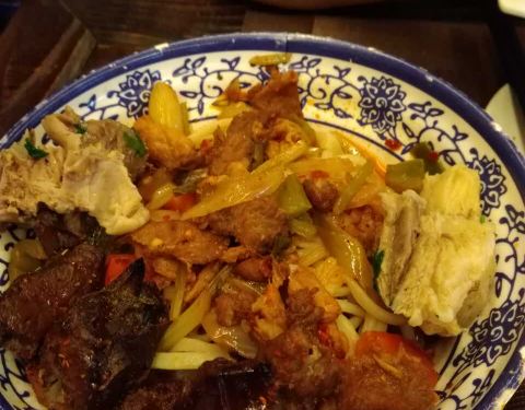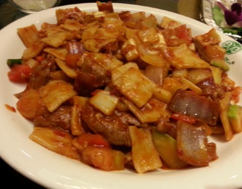 饭店装修挺简单,主要的是菜品味道很不错。一家不错的新疆餐厅,位于曲阳路