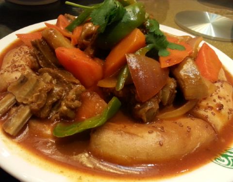 不过对羊肉过敏的我 还是觉得有股膻味 『大盘鸡』¥128 用的是草原土鸡 自然肉质就紧致多了 有点老